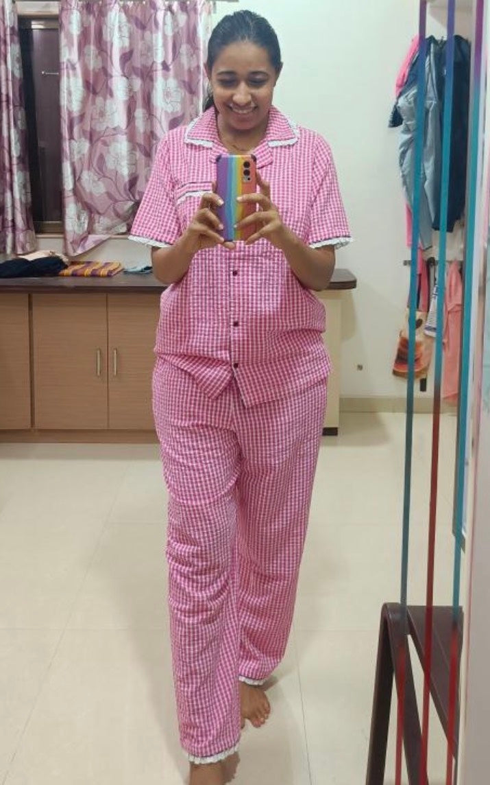 From heart-shaped (for your little love notes 💌) to playful embroideries, every night suit is designed to make lounging feel special. Crafted in India with pure cotton & breezy seersucker fabrics, our loungewear is as unique as you are- soft, chic, and full of charm! 🌸