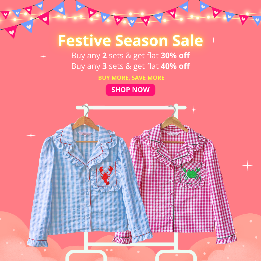 From heart-shaped (for your little love notes 💌) to playful embroideries, every night suit is designed to make lounging feel special. Crafted in India with pure cotton & breezy seersucker fabrics, our loungewear is as unique as you are- soft, chic, and full of charm! 🌸