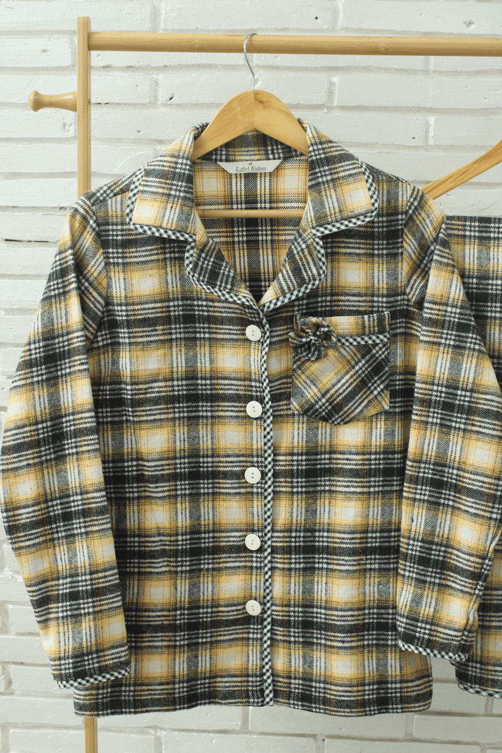 Introducing our Bumble Bee Night Suit Set, a perfect blend of fun and comfort! Designed in striking black and yellow, this set is all about cozying up in style. The playful yellow and black combination brings energy and warmth, while the chic black and white piping adds a sophisticated touch. The cute bow on the pocket gives it that extra whimsical flair, making it your go-to choice for a night of relaxed elegance. The button size and design may vary slightly from the image. Made from ultra-soft fabric, this set promises to keep you snug while you rest. Get ready to buzz into blissful nights with the Bumble Bee Night Suit Set by Label Kuhoo.