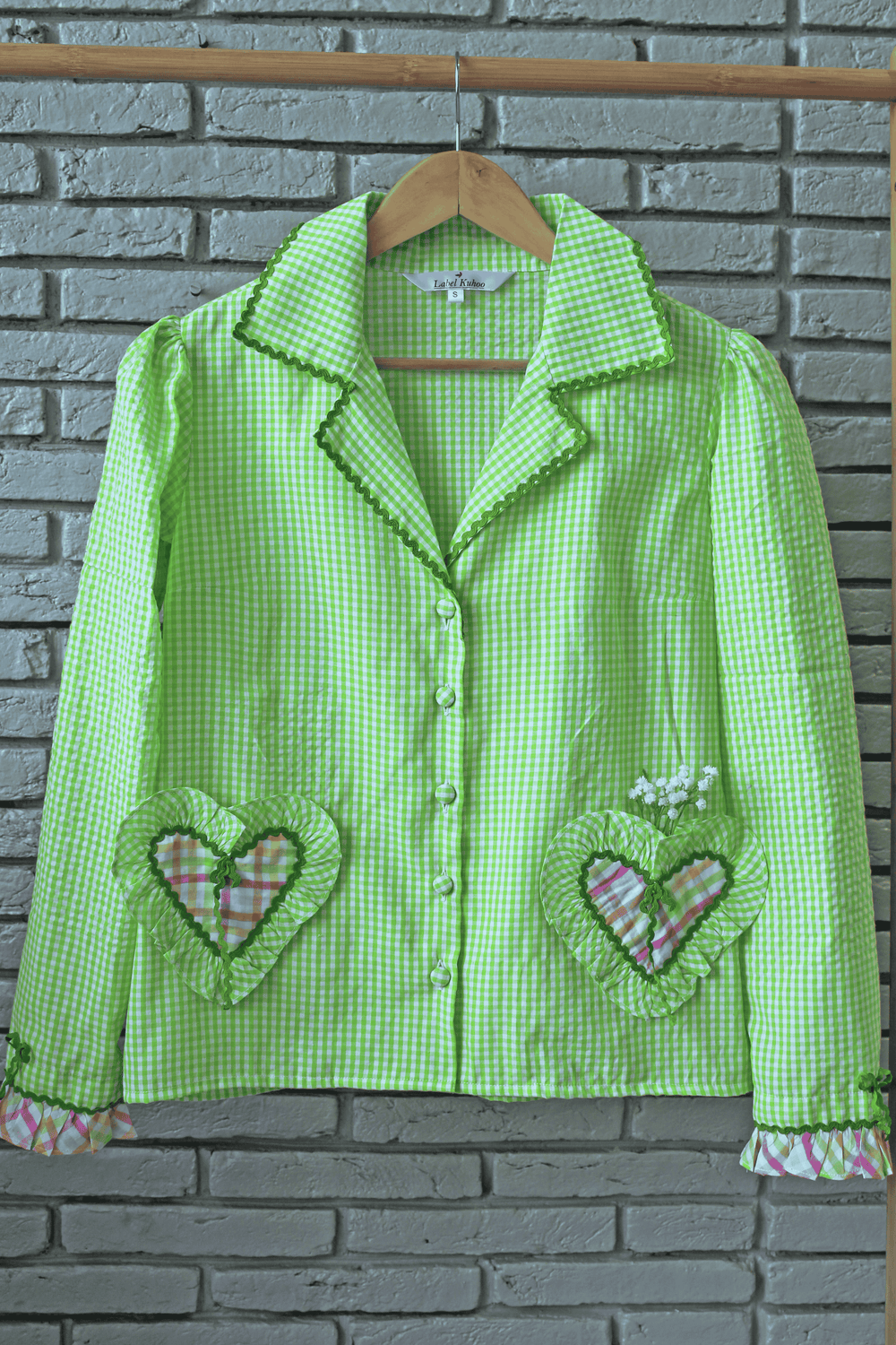 Introducing our Candy Heart Shorts Set – the perfect combination of playful charm and cozy comfort. Featuring a delightful green and white checkered pattern, this set is beautifully accentuated with dark green lace and a cute bow for a touch of elegance. The heart-shaped pocket, adorned with colorful ruffles, adds a whimsical and fun flair, while the ruffles on the shorts' hems bring a light, breezy vibe. Whether you're lounging or getting ready to rest, the Candy Heart Shorts Set ensures you do so in style and comfort.
