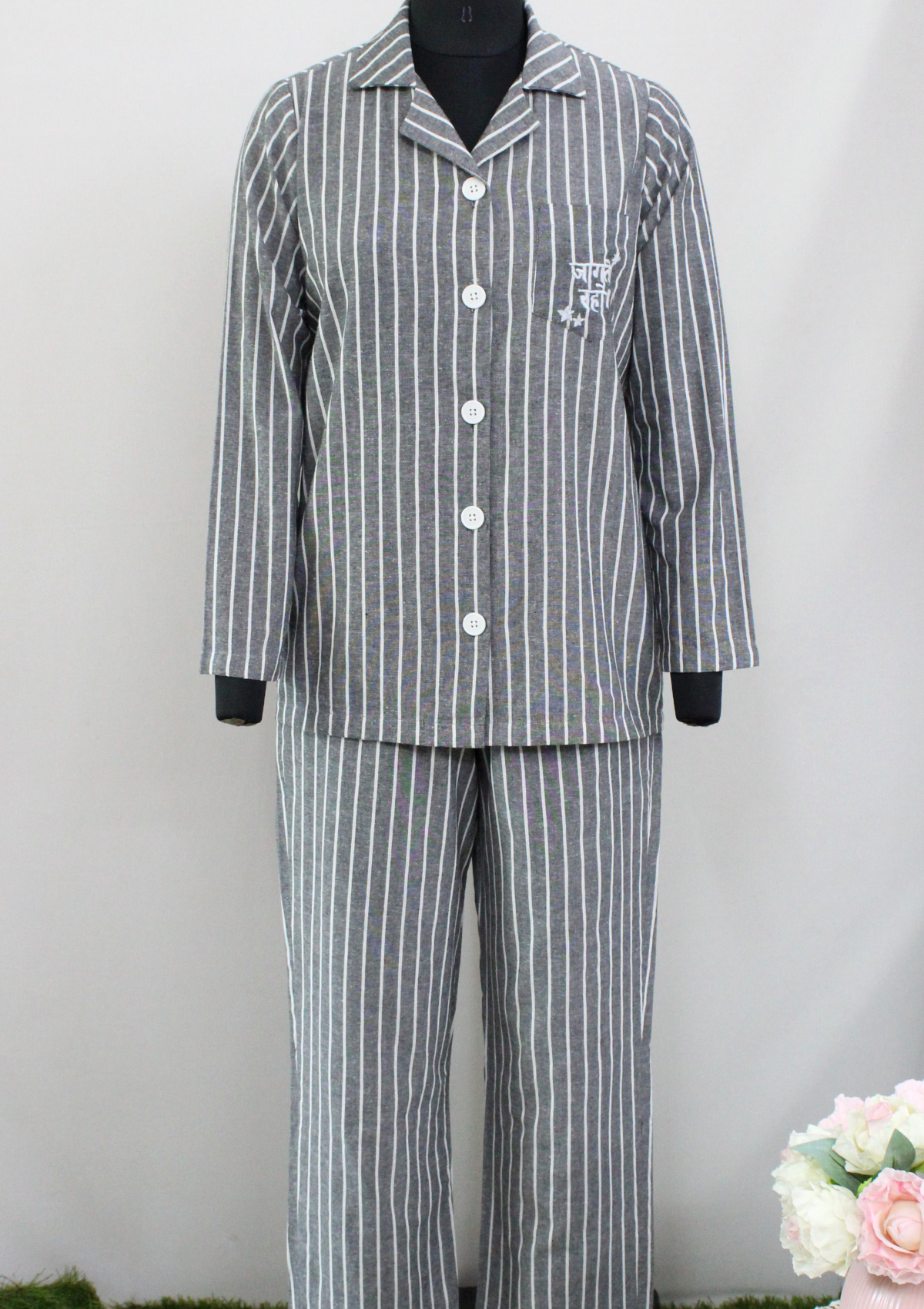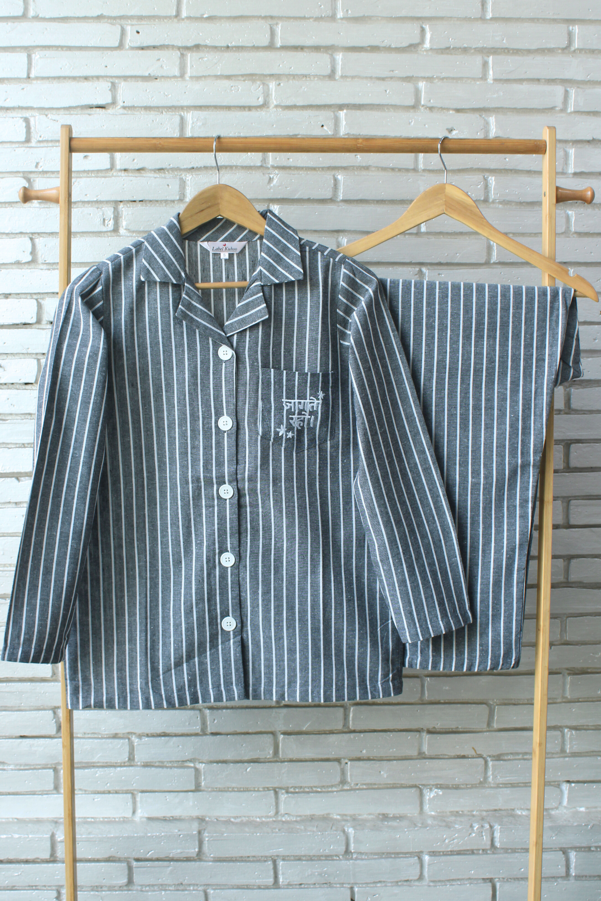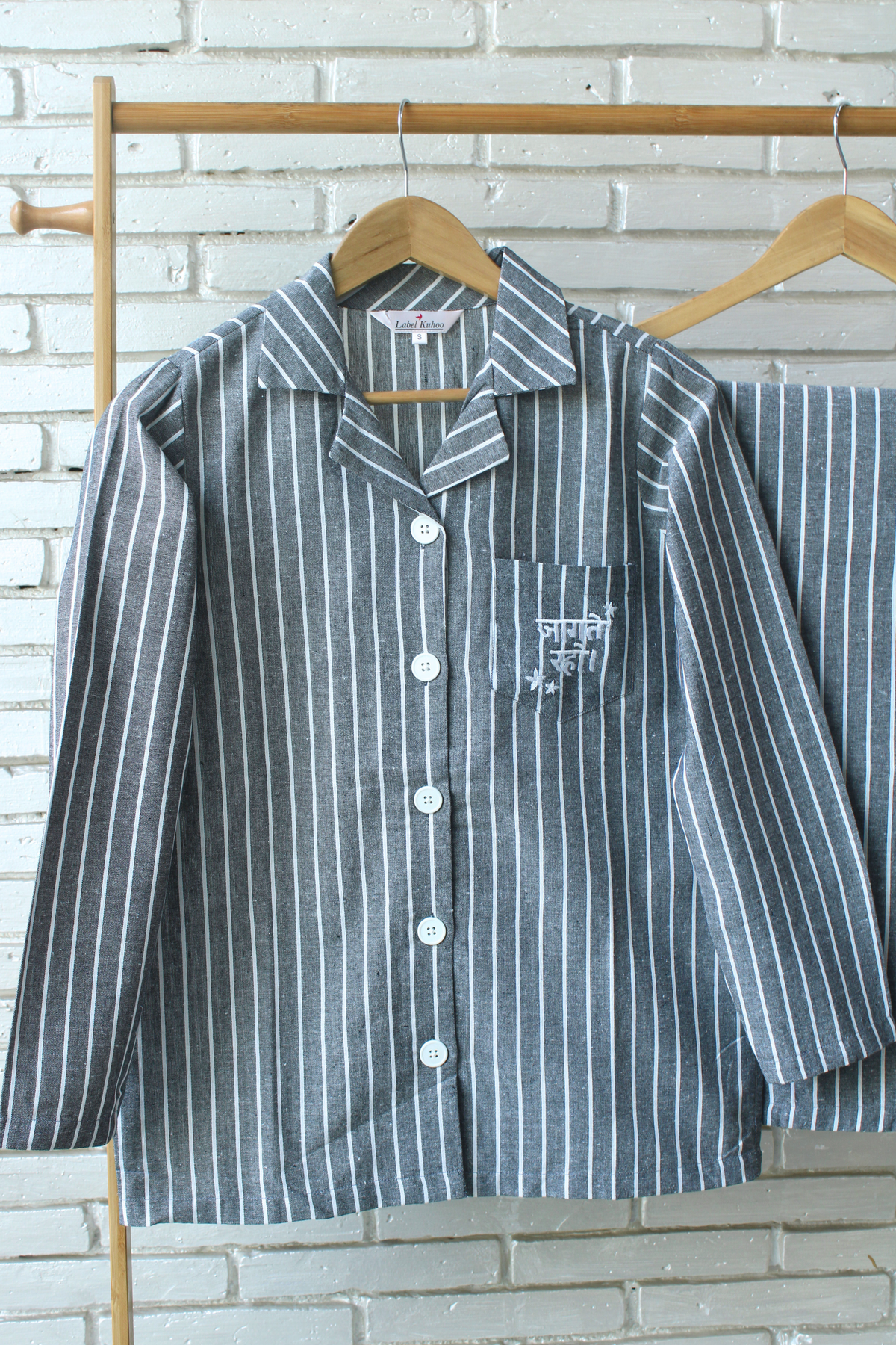 Our Jaagte Raho Night Suit Set is all things cute! The embroidered pocket on the lovely stripes print is sure to brighten up your day. Made from the purest of cottons, this night suit set is a must have in your lounge wear wardrobe!