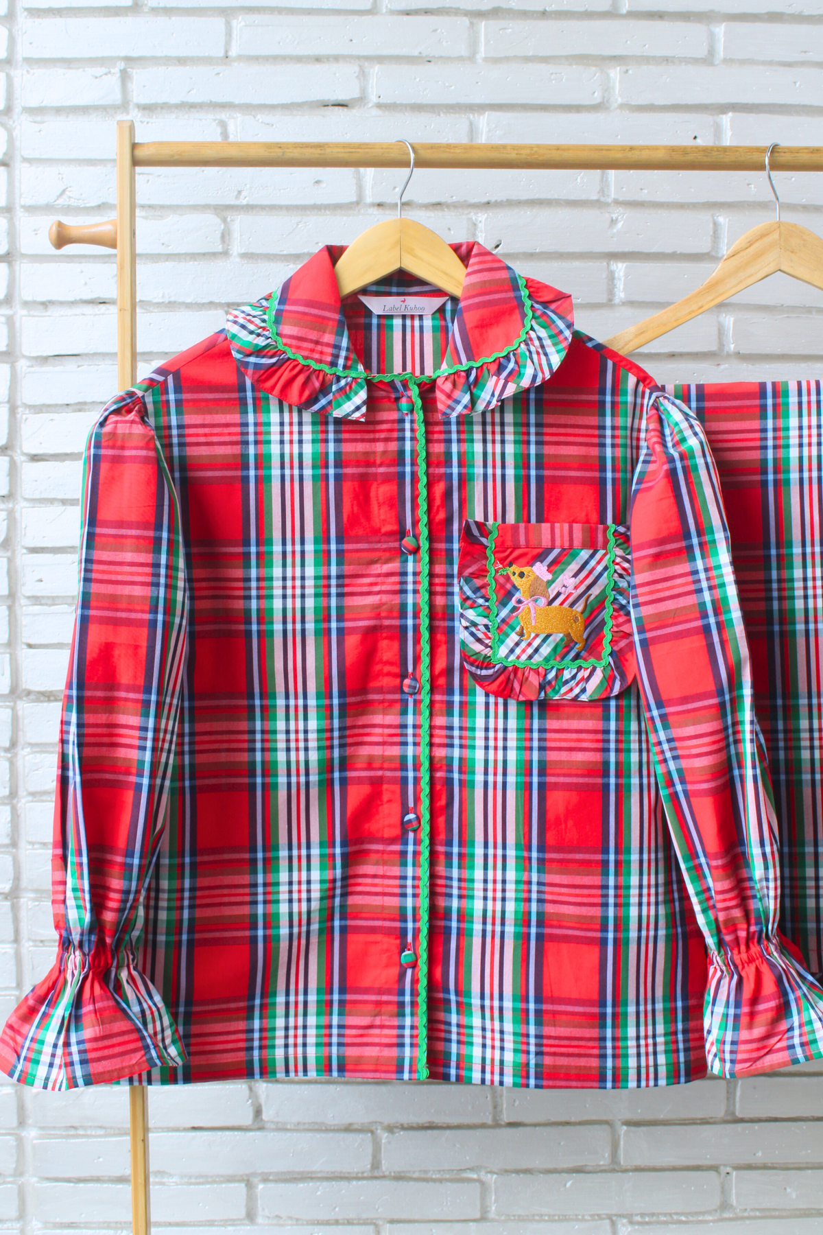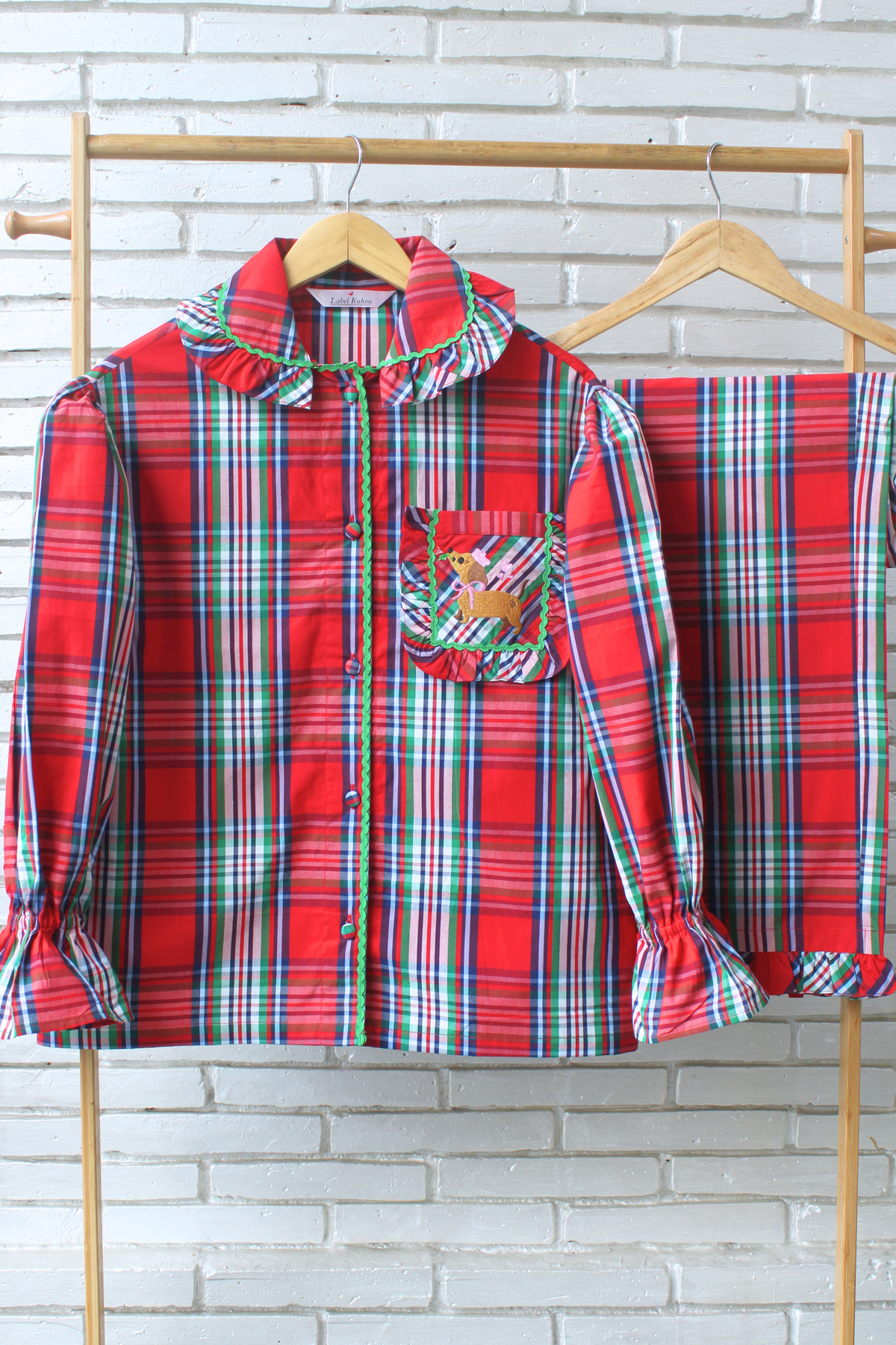 Introducing our Little Valentine Night Suit Set, a heartwarming blend of comfort, charm, and playful romance. Designed on a classic red plaid base, this cozy set features delicate ruffle detailing on the collar, pocket, and pyjama hems, paired with adorable puff sleeves for a soft, vintage-inspired look.