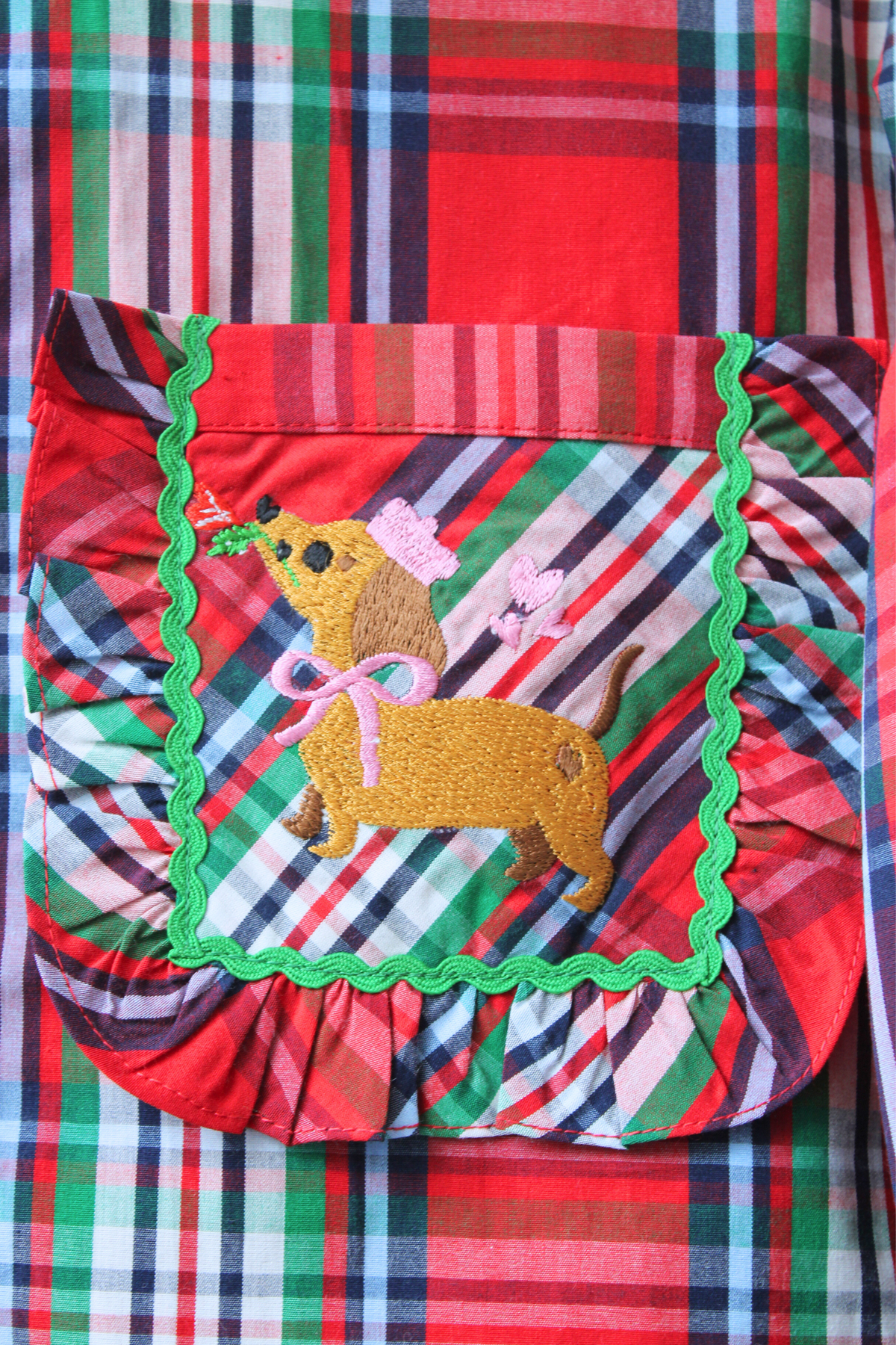 The highlight is the sweet embroidered puppy on the pocket wearing a cute hat, a ribbon collar with heart details, and holding a tiny flower in its mouth bringing the spirit of Valentine warmth to life. Perfect for snug nights and special moments, this set is made to wrap little ones in comfort, cuteness, and love.
